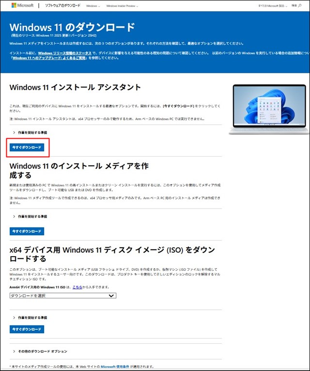 そんな時は直接Windows11インストールアシスタントのページに行ってWindows11のインストールパッケージをダウンロードしてアップグレードを行うことができます。